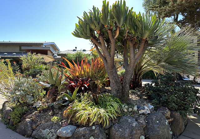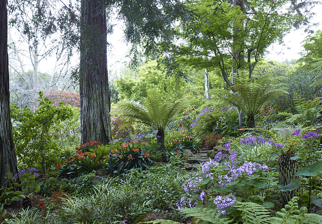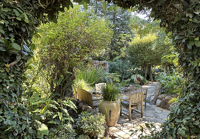 remains unchanged.. The terraced back garden, while a little challenging to traverse, is lush and colorful all year round and full of rare and unusual flowering specimens. |